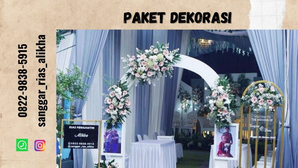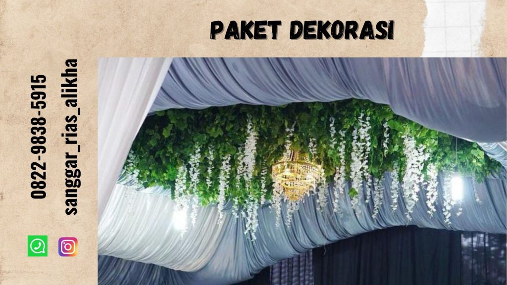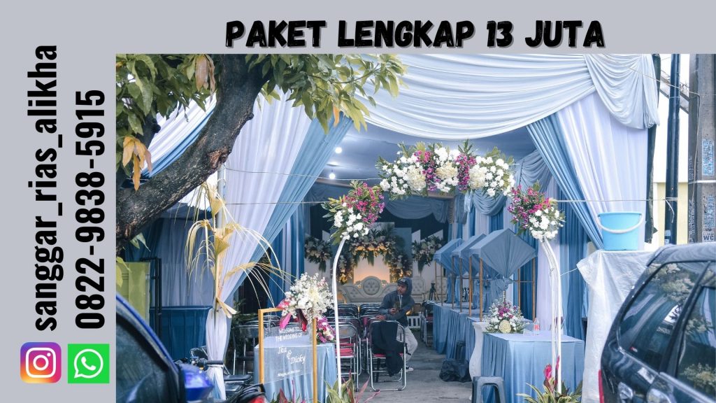 Dengan harga paket 13 juta rupiah, Sanggar Rias Pengantin Alikha menawarkan layanan dekorasi pernikahan yang mencakup tenda pernikahan, kursi, piring, panggung untuk pelaminan, dan set prasmanan. Harga tersebut sudah termasuk biaya jasa dekorasi dan pengaturan oleh tim profesional Sanggar Rias Pengantin Alikha. Hal ini akan sangat memudahkan calon pengantin dalam mempersiapkan dekorasi pernikahan mereka karena mereka tidak perlu mengatur dan memesan layanan tenda, kursi, piring, panggung untuk pelaminan, set prasmanan, dan kain penutup secara terpisah.